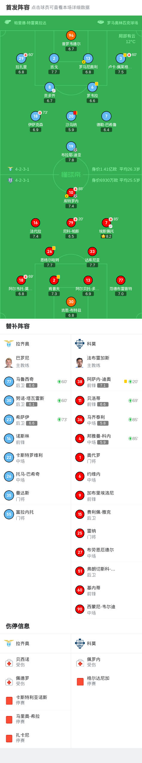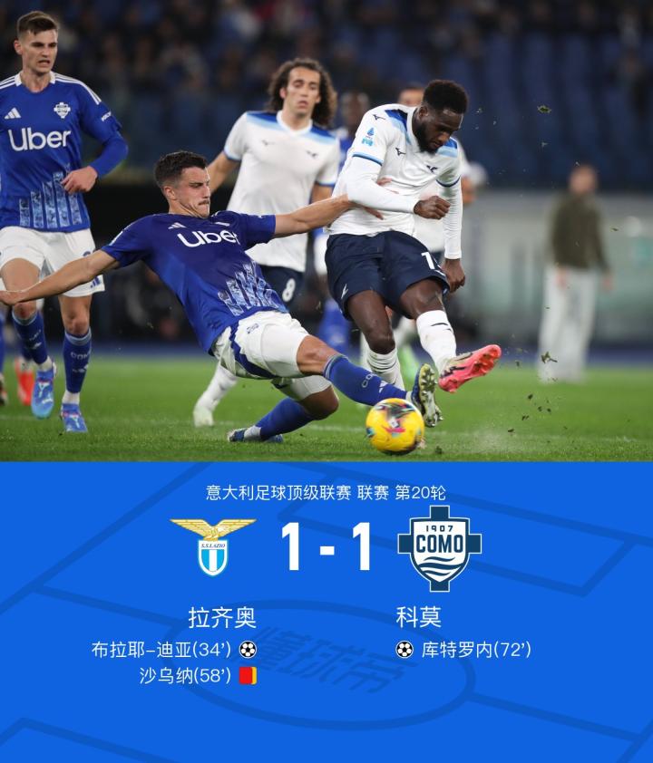 最终,经过90分钟的激烈角逐,拉齐奥和科莫以1-1的比分握手言和。虽然拉齐奥在比赛中取得领先,但科莫坚持不懈,最终实现了扳平。这场比赛展现了两支球队都顶尖的比赛水平,也给球迷们带来了一场难忘的对决。